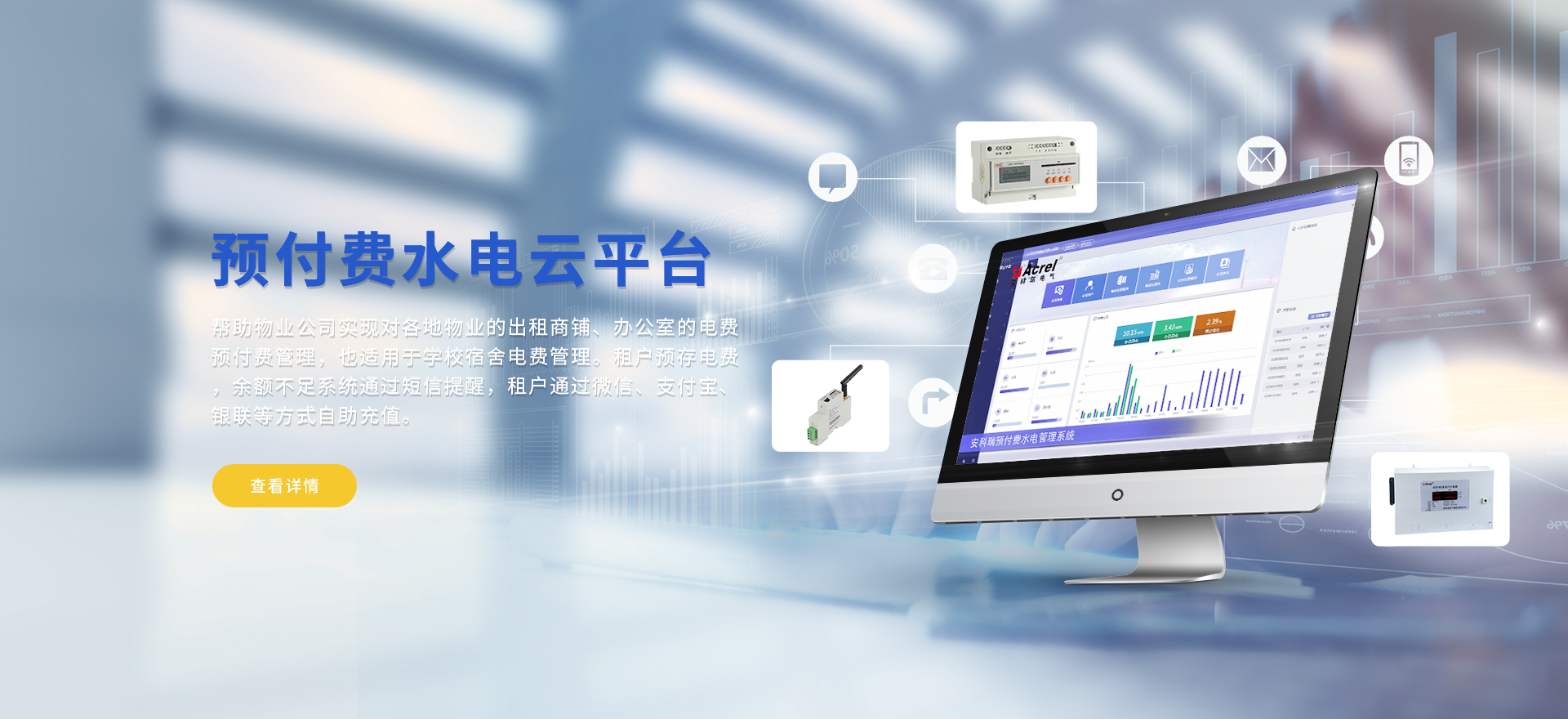 安科瑞提供的解決方案包括Acrel-EIoT能源物聯(lián)網(wǎng)云平臺(tái)變電所運(yùn)維云平臺(tái)安全用電管理云平臺(tái)環(huán)保用電監(jiān)管云平臺(tái)智慧消防云平臺(tái)能源管理云平臺(tái)、工業(yè)企業(yè)能源管控平臺(tái)、遠(yuǎn)程預(yù)付費(fèi)云平臺(tái)餐飲油煙監(jiān)管云平臺(tái)電動(dòng)汽車/電瓶車充電樁收費(fèi)管理云平臺(tái)、電力監(jiān)控/無(wú)線測(cè)溫系統(tǒng)、電能質(zhì)量治理系統(tǒng)、電氣火災(zāi)監(jiān)控系統(tǒng)消防設(shè)備電源監(jiān)控系統(tǒng)防火門監(jiān)控系統(tǒng)應(yīng)急照明和疏散指示系統(tǒng)、智能照明控制系統(tǒng)、醫(yī)用隔離電源絕緣監(jiān)測(cè)系統(tǒng)等,幫助用戶實(shí)現(xiàn)能源智能化、可視化、精細(xì)化管理,提高用能效率和用能安全,為企業(yè)節(jié)能降耗和實(shí)現(xiàn)能源數(shù)字化建設(shè)提供數(shù)據(jù)服務(wù)。